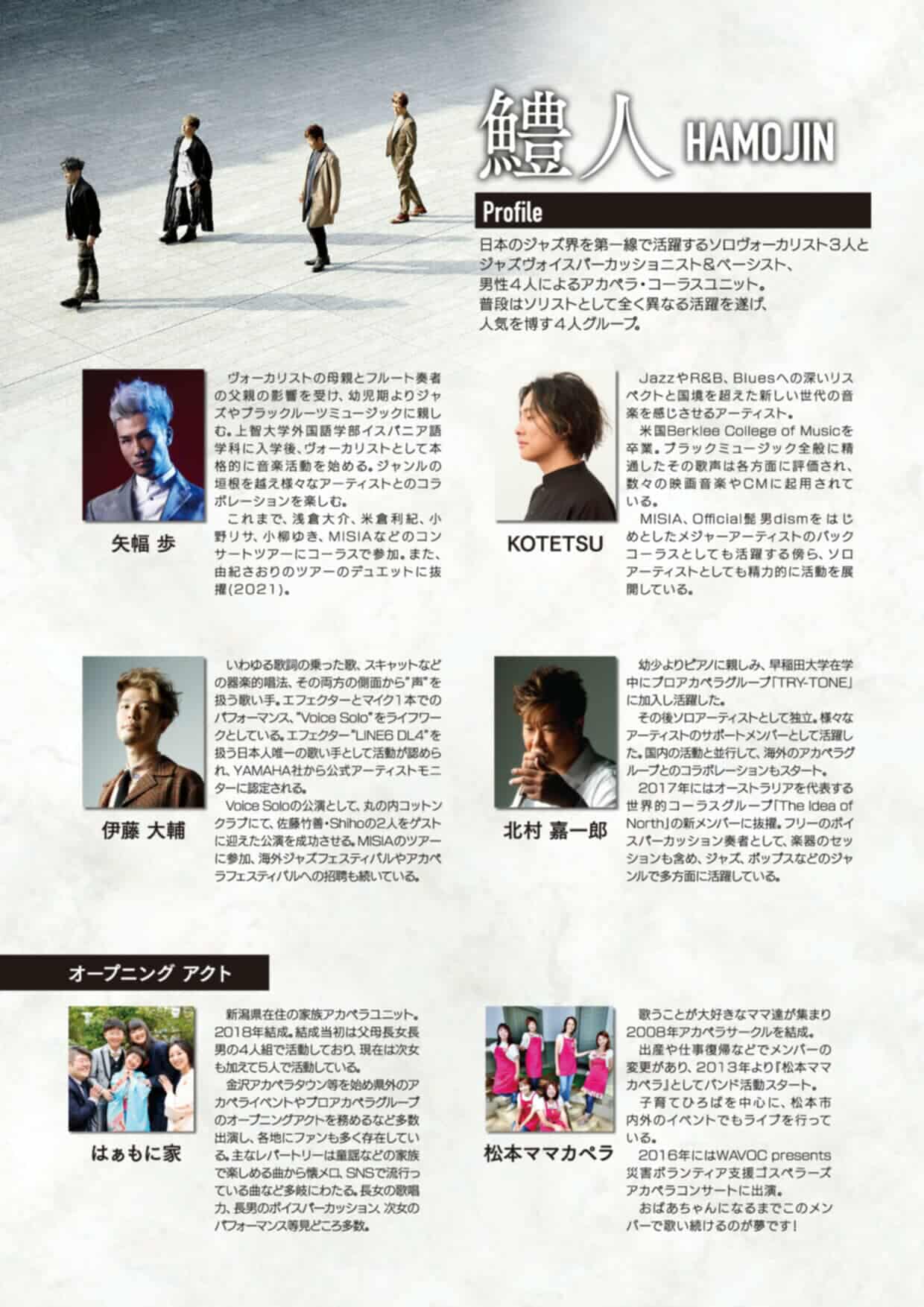 初日の「歌おう」は、鱧人で今回のために用意した譜面を使って、皆さんと一緒に歌ってみる体験企画で、誰でも参加できます。(ただし未就学児は不可)。チケットなど詳しいことは次のウェブサイトを
